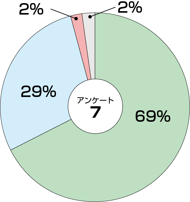 - 1~7の項目について、おおむね「できている」「おおむねできている」と90%以上の回答をいただいております。