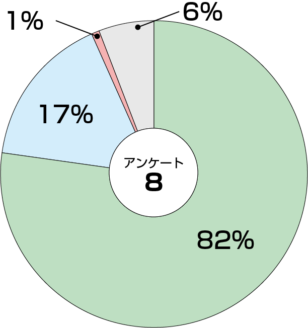 - 8の項目「お子様は、幼稚園が好きで、友達や担任と過ごすことを楽しいと感じている」は、「できている」「おおむねできている」と合わせると99%です。子どもたちが幼稚園で楽しく過ごせているのは大変うれしいことです。登園時になかなか保護者の皆様から離れられなくてもお部屋に入ると気持ちを切り替えられています。
