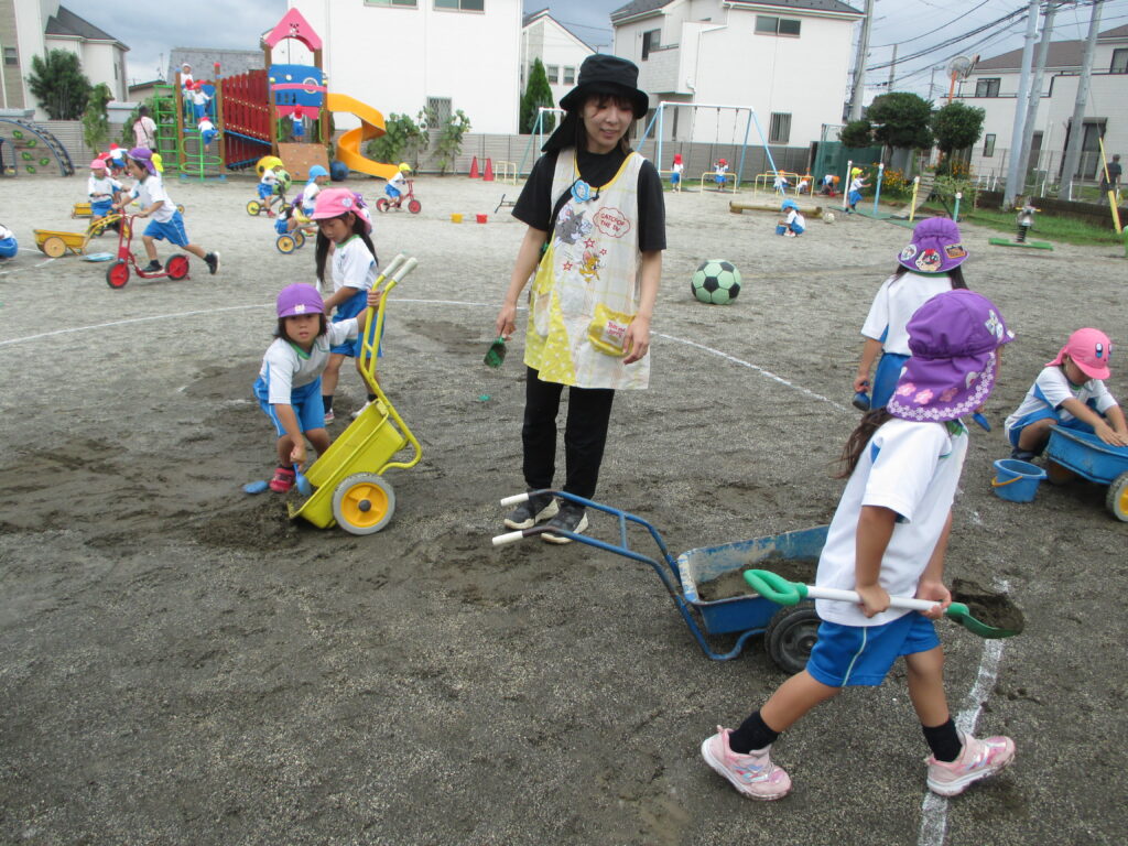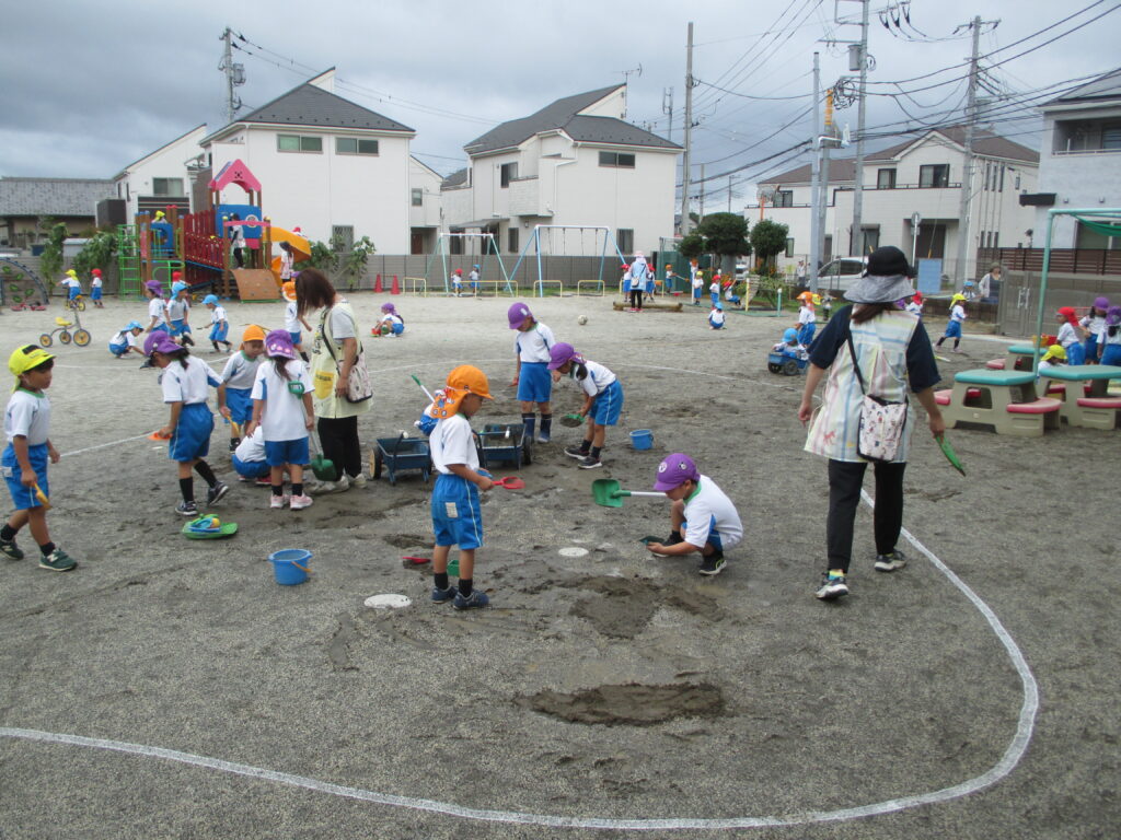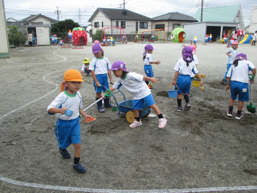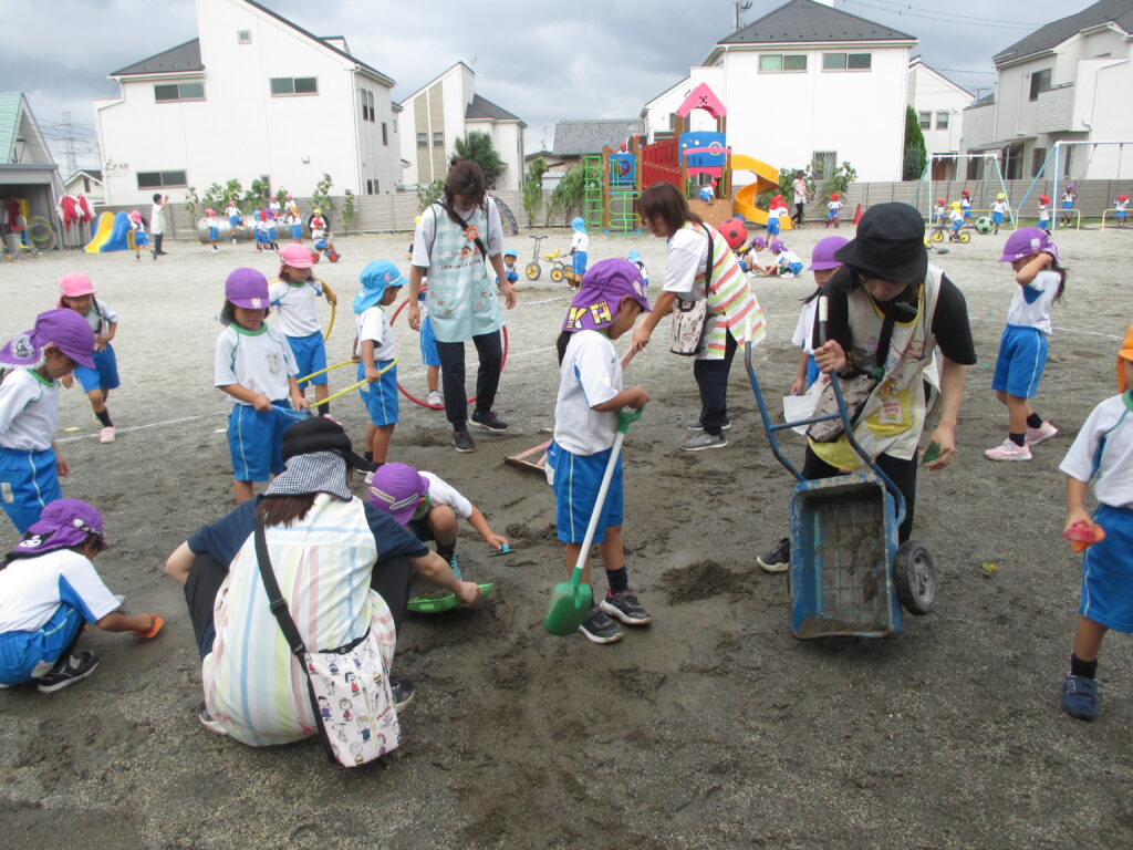 園の様子 園庭の整備中 2025-09-19 今朝は雨が上がっていましたが、園庭には水溜まりができていました。 先生方が園庭整備をしていたら、子どもたちが園庭の水溜まりに砂場から砂を運んでくれました。 子どもたちのお陰で運動会の練習ができました。 前 運動会の練習をしています 最近 運動会最後に全園児で踊る「ソイヤ」 こちらもおすすめ 保護中: 移動動物園がきました 2025-05-14 保護中: 枝豆を収穫しました(ふじ組) 2024-10-24 保護中: わくわくがいっぱい♫ 2024-11-19
