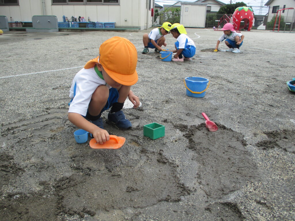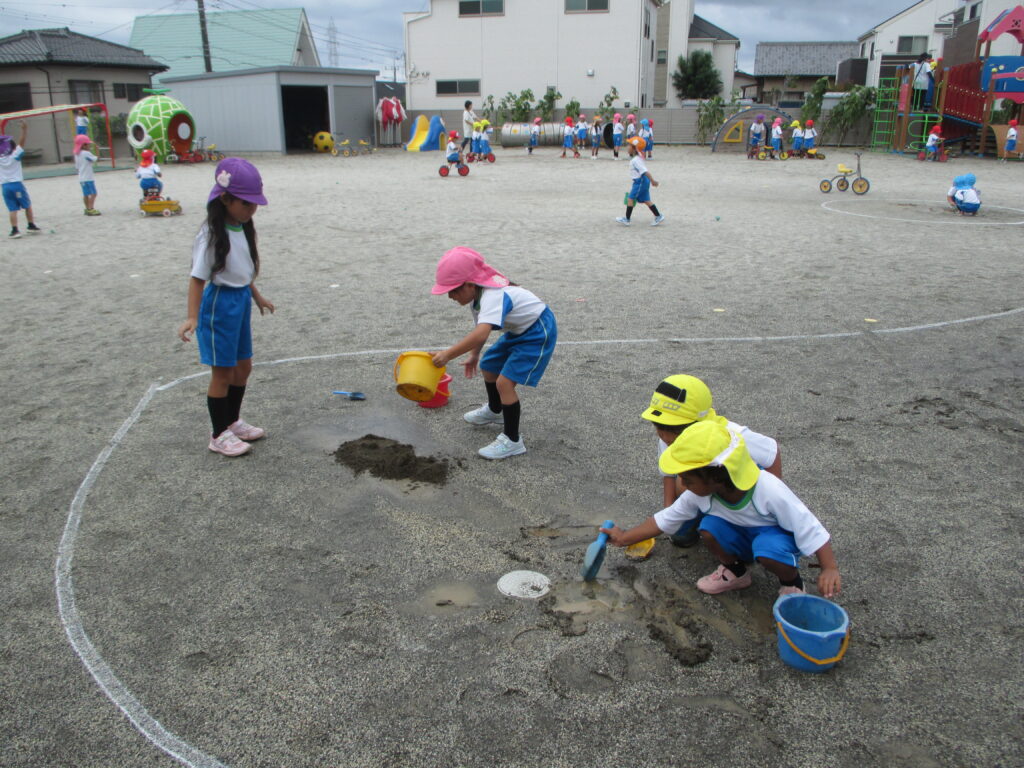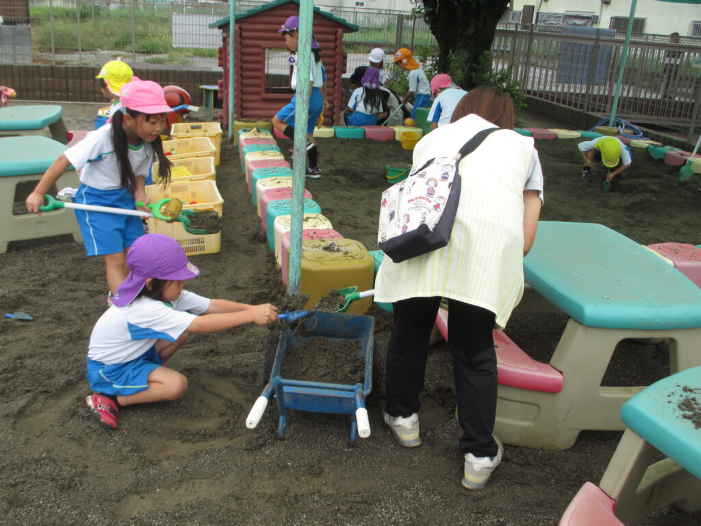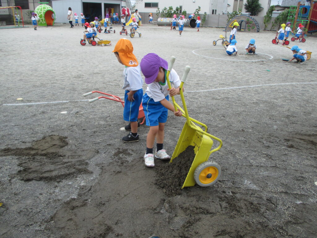 園の様子 園庭の整備中 2025-09-19 今朝は雨が上がっていましたが、園庭には水溜まりができていました。 先生方が園庭整備をしていたら、子どもたちが園庭の水溜まりに砂場から砂を運んでくれました。 子どもたちのお陰で運動会の練習ができました。 前 運動会の練習をしています 最近 運動会最後に全園児で踊る「ソイヤ」 こちらもおすすめ 保護中: 移動動物園がきました 2025-05-14 保護中: 枝豆を収穫しました(ふじ組) 2024-10-24 保護中: わくわくがいっぱい♫ 2024-11-19